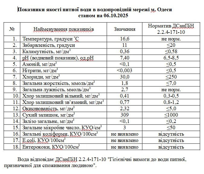 ✅ За результатами останніх досліджень, одеська водопровідна вода відповідає всім санітарним нормам і є безпечною для споживання.